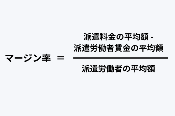 派遣料⾦の平均額から派遣労働者の平均賃⾦を除いた⾦額の割合を⽰したもので、以下の計算式で算出されます